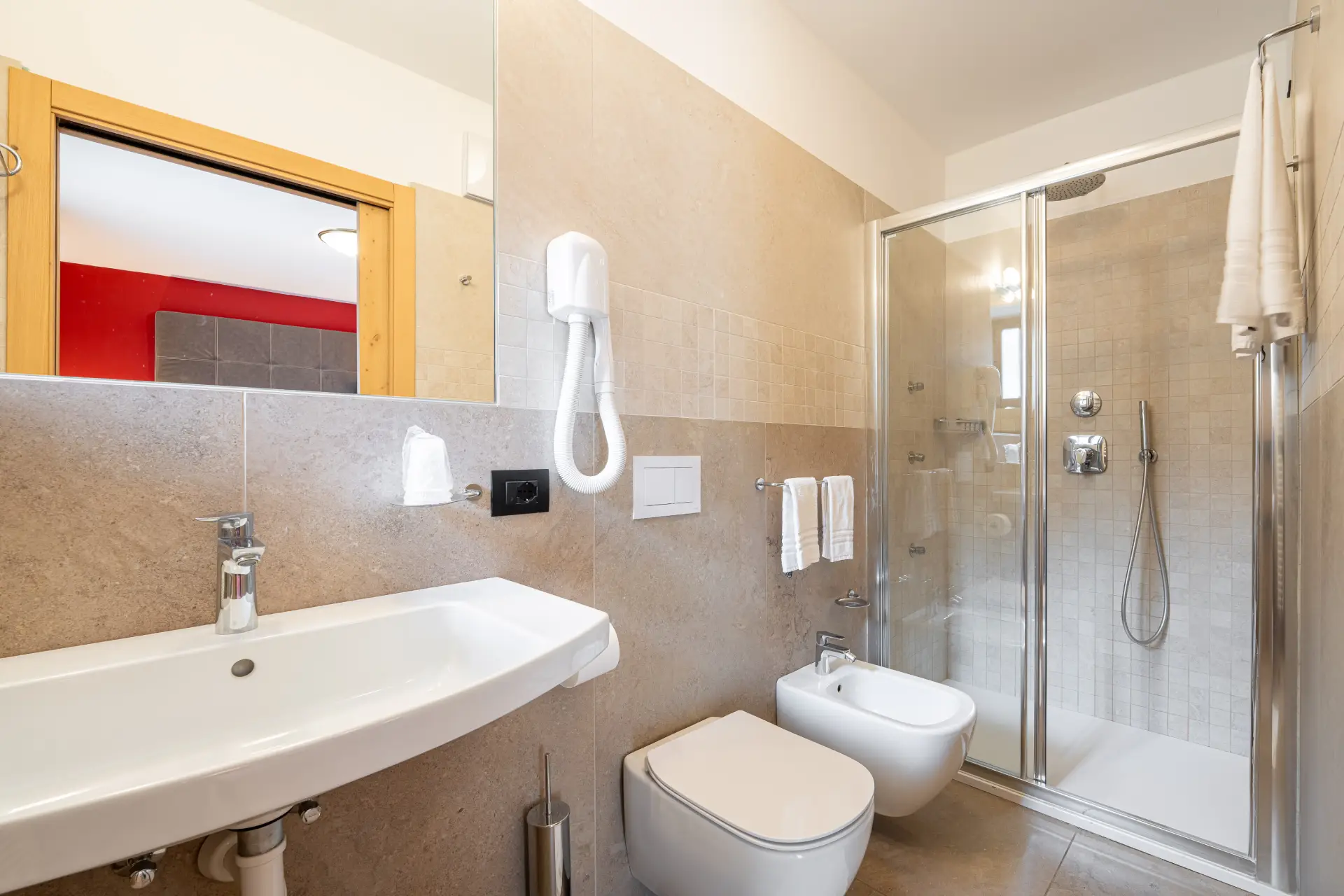 Un livello superiore di comfort, pensato per chi desidera più spazio e più stile. La Camera Prestige combina eleganza e calore alpino con una vista che lascia senza fiato: dalle finestre si apre lo spettacolo delle cime dolomitiche. Arredi raffinati, luce naturale e servizi accurati fanno di questa stanza un vero rifugio panoramico.